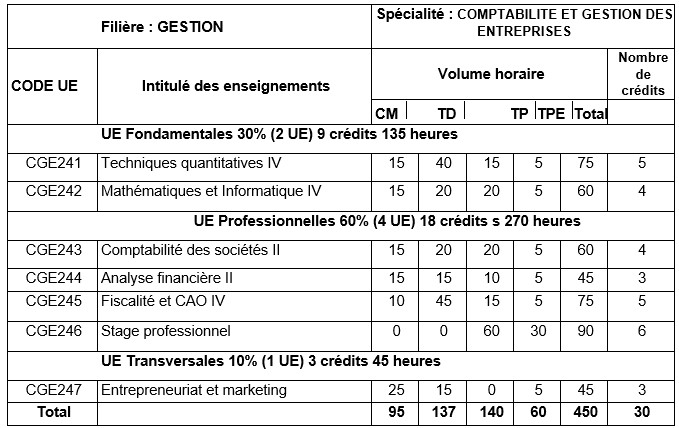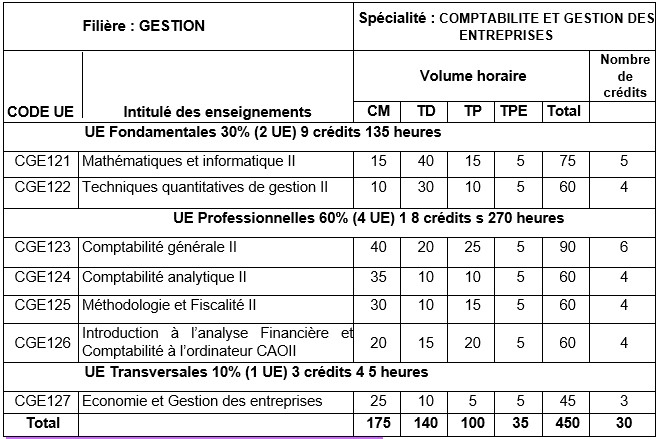 Le BTS en Comptabilité et gestion des entreprises dure 02 ans, le rythme de la formation en cours du jour et soir